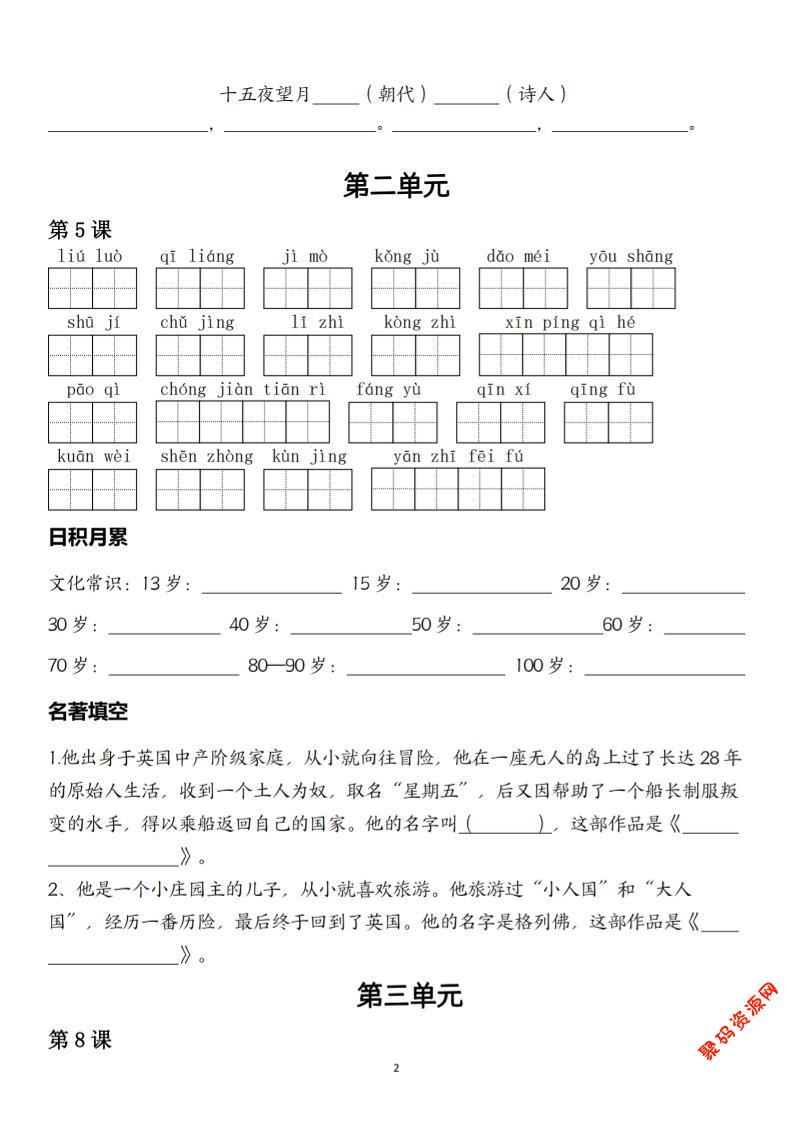 - 六下语文寒假预习知识晨读单-23页 2026-02-17