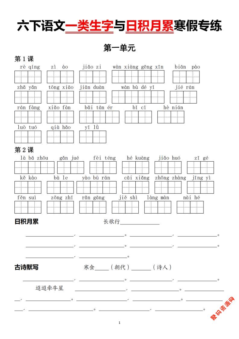 - 六下语文一类生字与日积月累寒假专练 2026-02-17