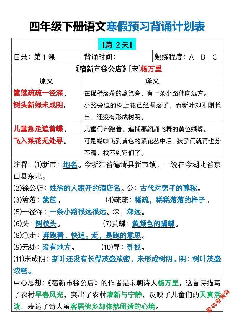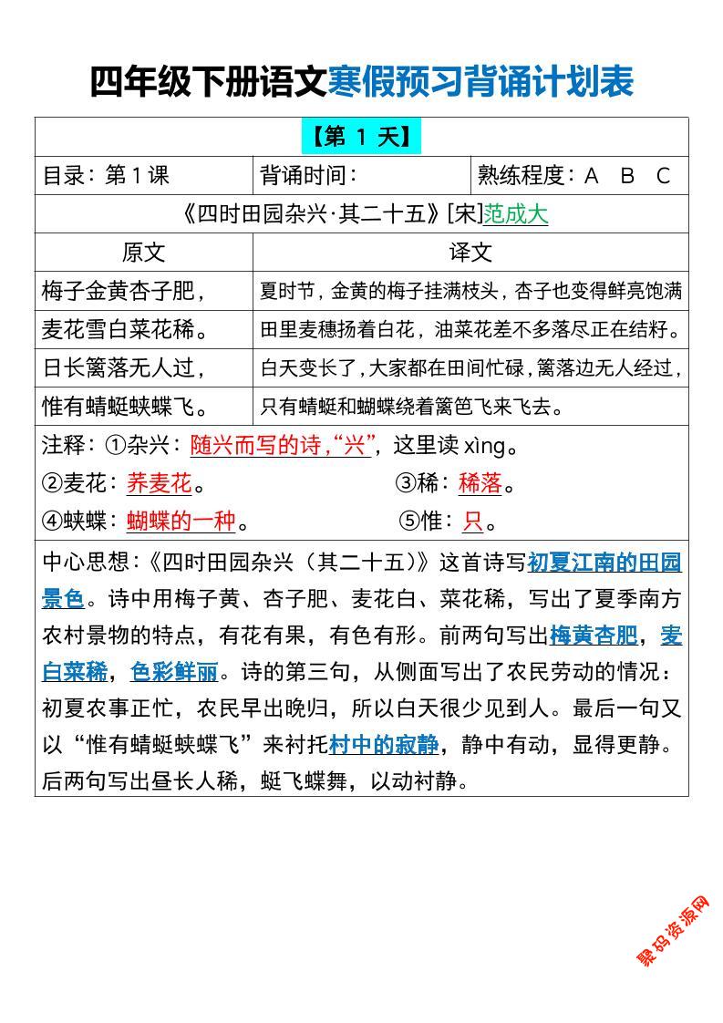 聚码网 四年级 四下语文寒假预习背诵计划表18天16页 http://www.appstore168.com/120617.html