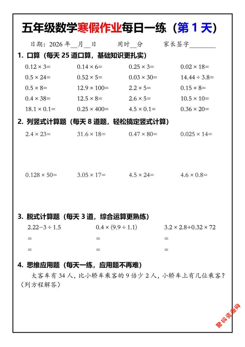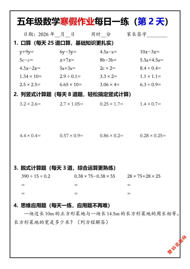 - 五年级数学下寒假作业每日一练30页 2026-02-18