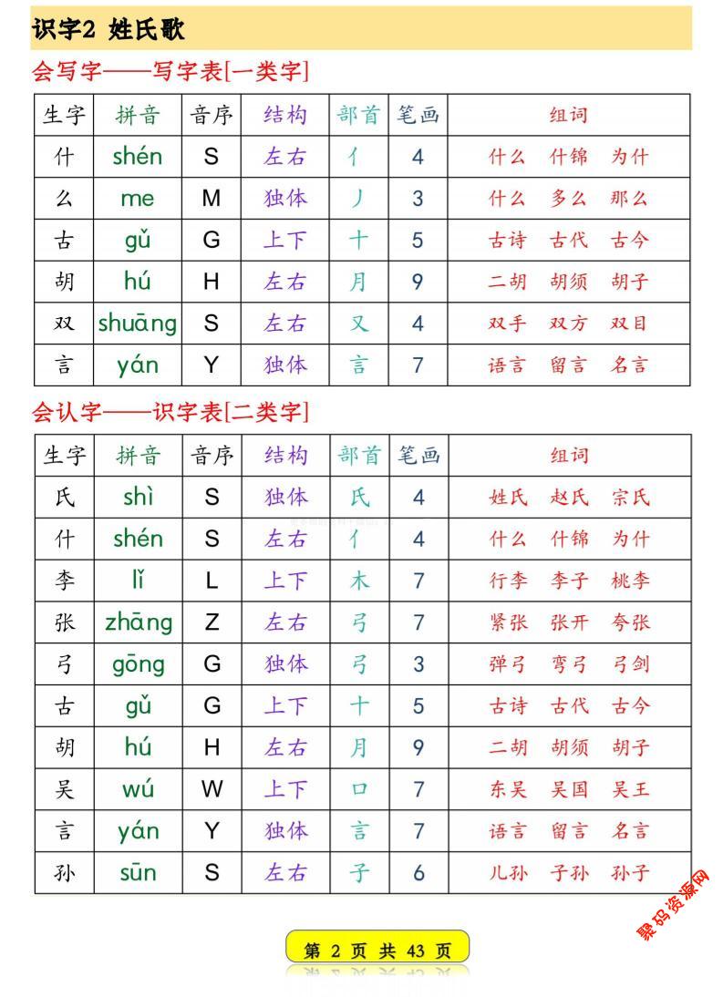 - 一年级下语文写字表笔顺组词字帖(绿色) 2026-02-24