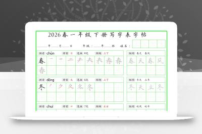 - 一年级下语文写字表笔顺组词字帖(绿色) 2026-02-24