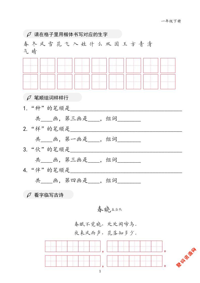 - 一年级下语文生字笔顺跟练字帖 2026-02-25
