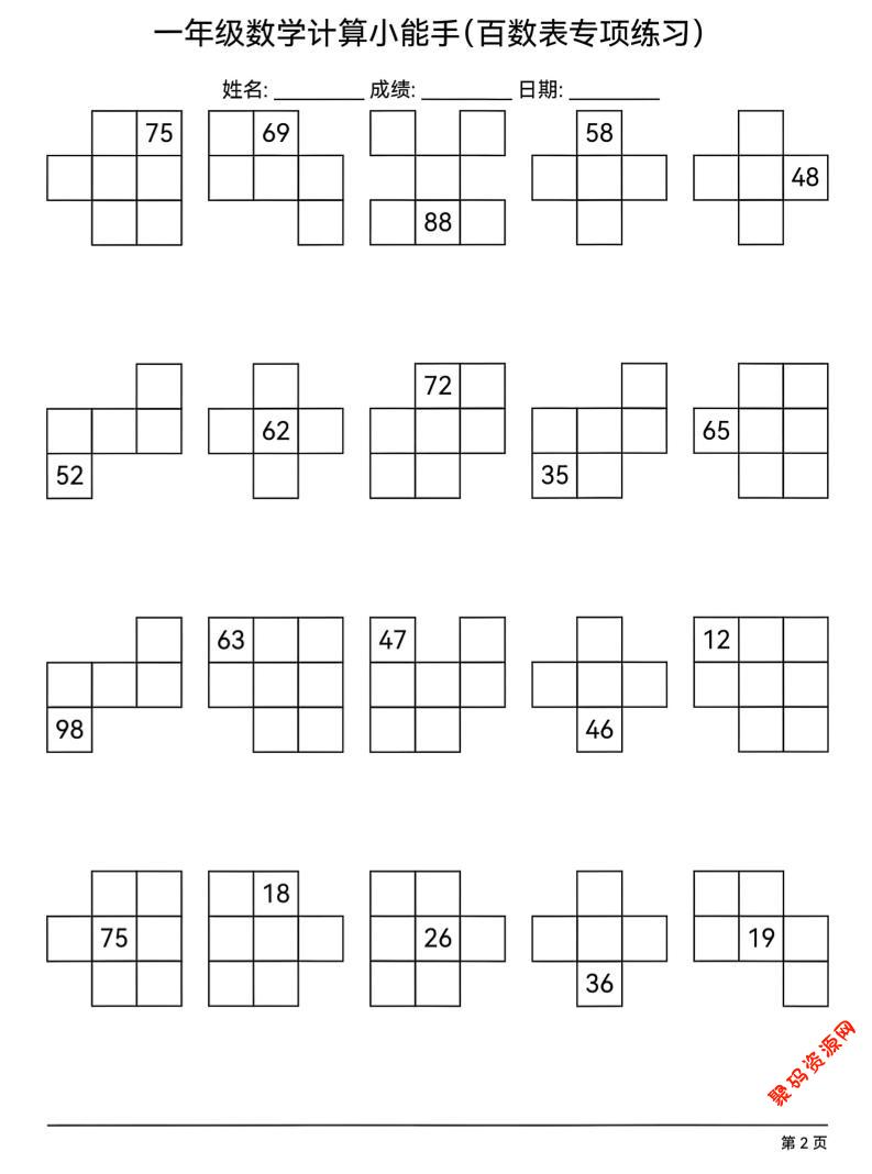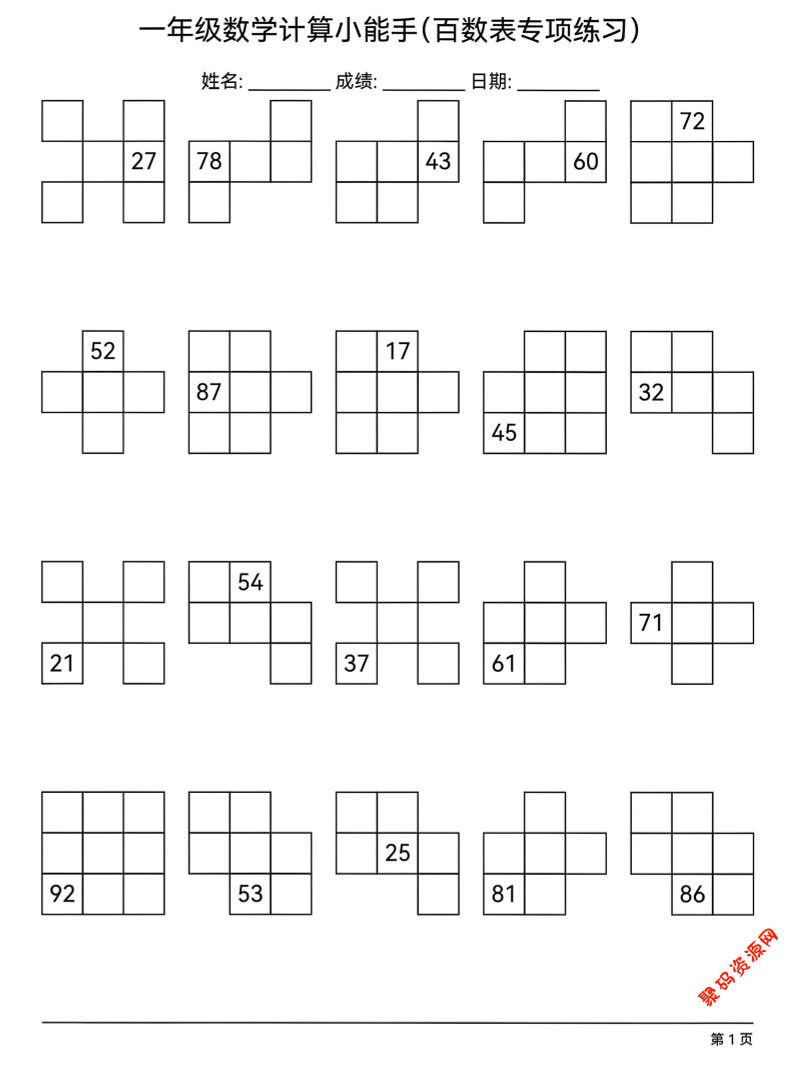 聚码网 一年级 一年级下数学百数表专项练习 http://www.appstore168.com/120781.html