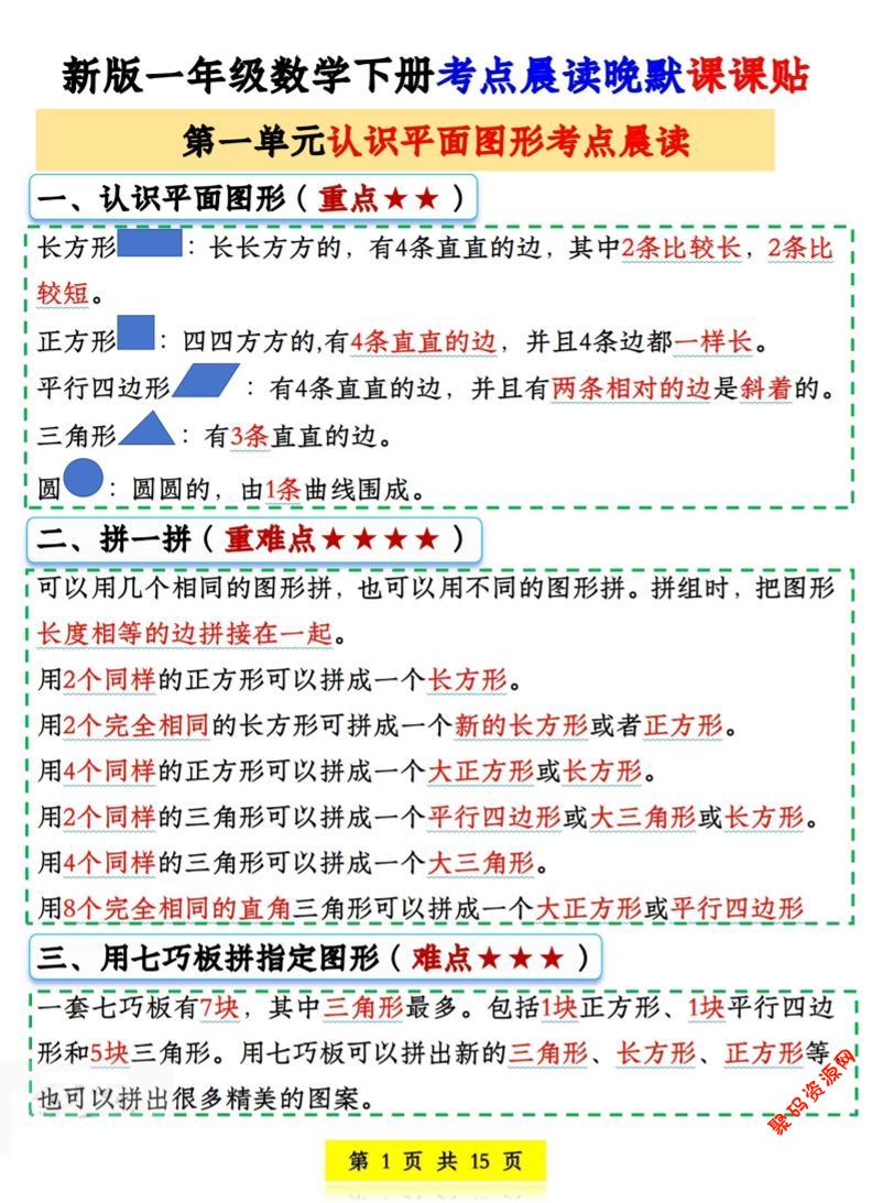 - 一年级下数学重点知识汇总 2026-02-24