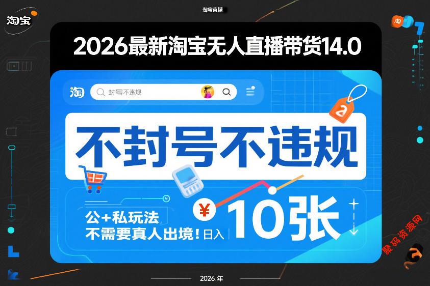 2026最新淘宝无人直播带货14.0,不封号不违规,公+私玩法,不需要真人出境,日入10张【揭秘】