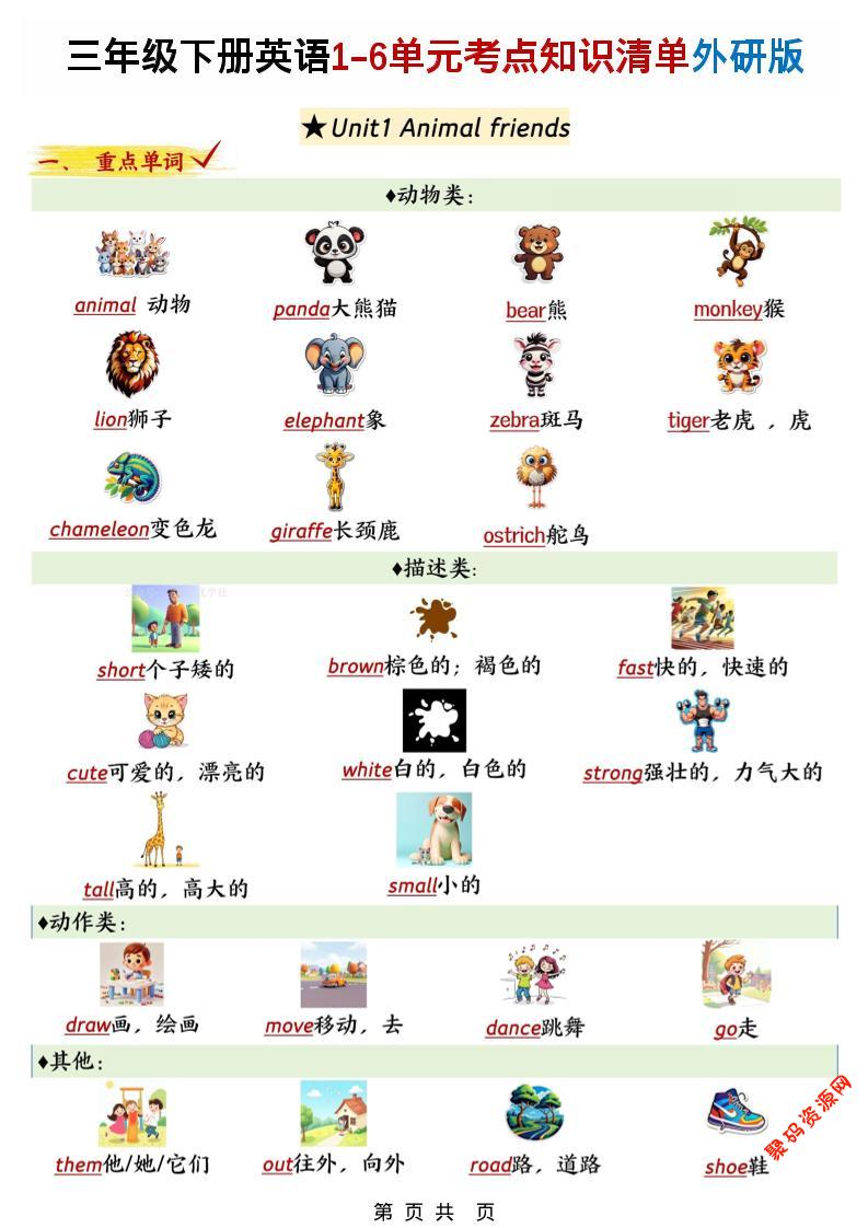 - 三下外研版英语1-6单元考点知识清单 2026-02-25