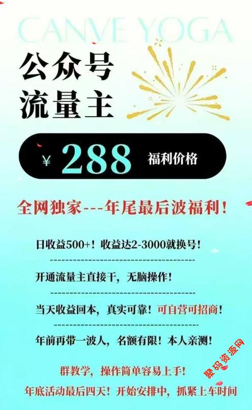 聚码网 网赚项目 26年公众号流量主撸收益新玩法,当天就有收益,日收益5张 http://www.appstore168.com/121403.html