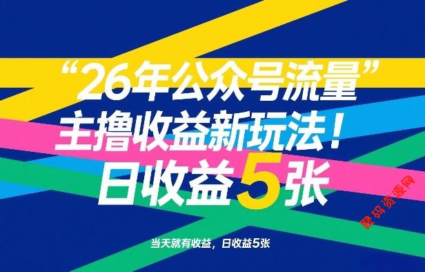 26年公众号流量主撸收益新玩法,当天就有收益,日收益5张