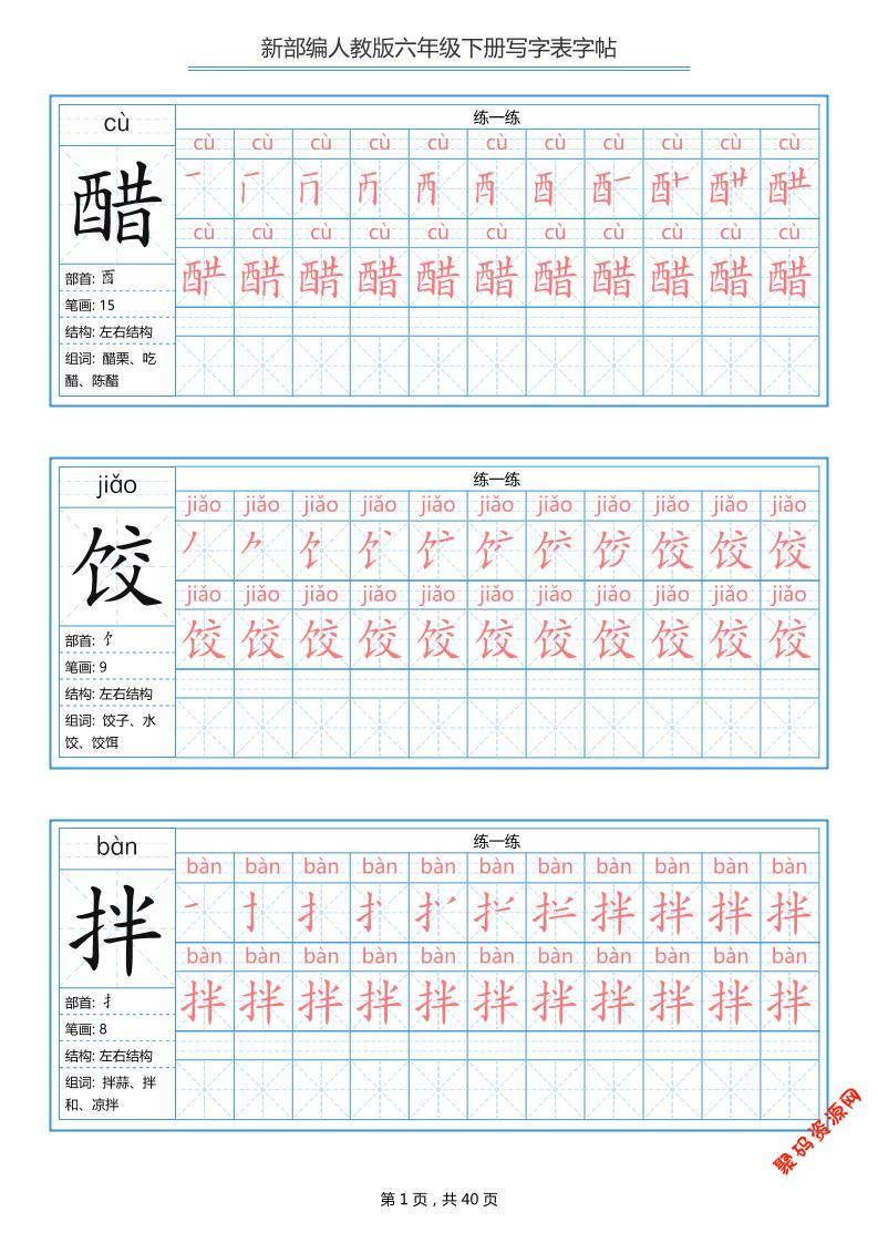 - 六年级语文下册写字表字帖(40页)拼音笔顺 2026-02-26