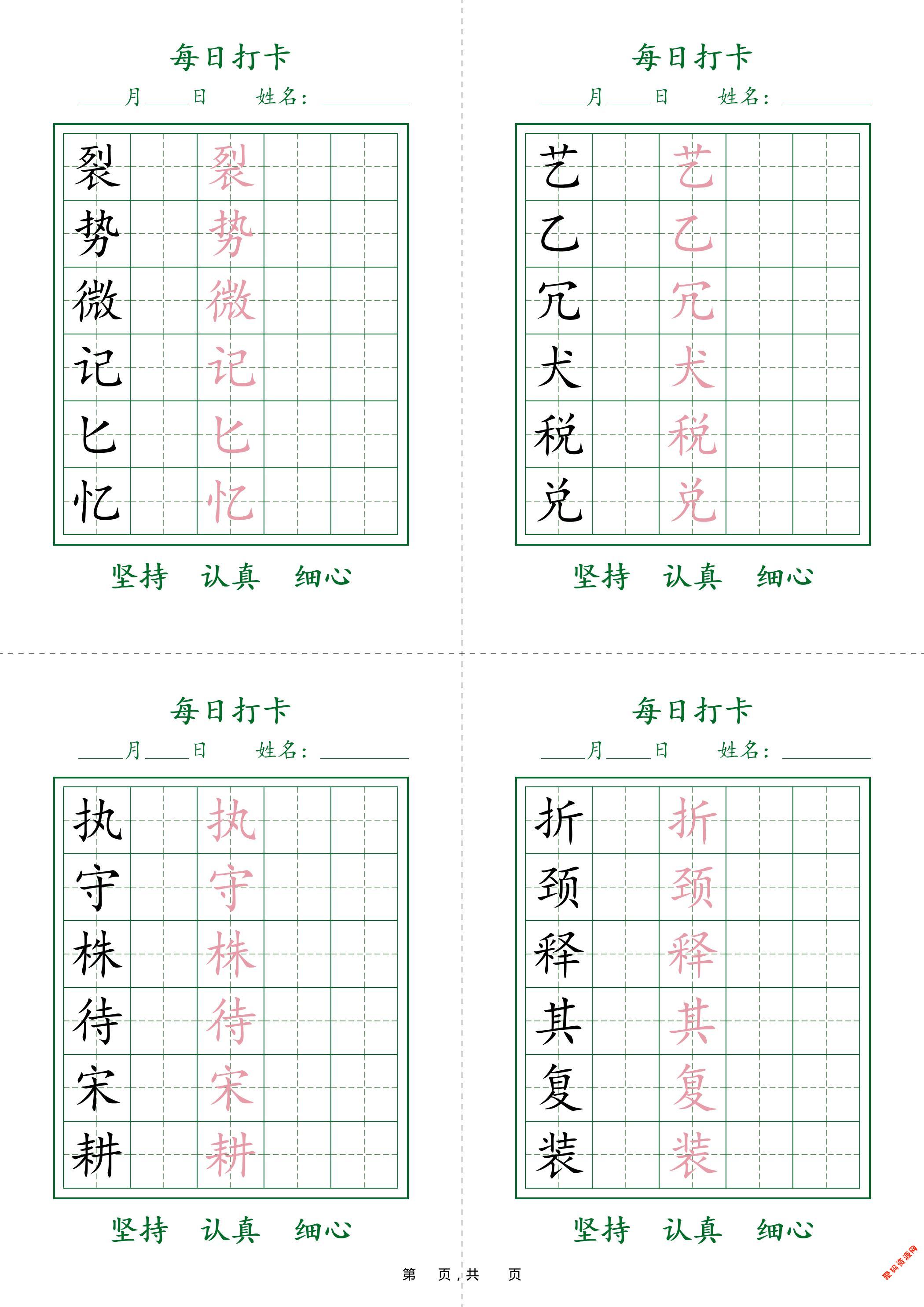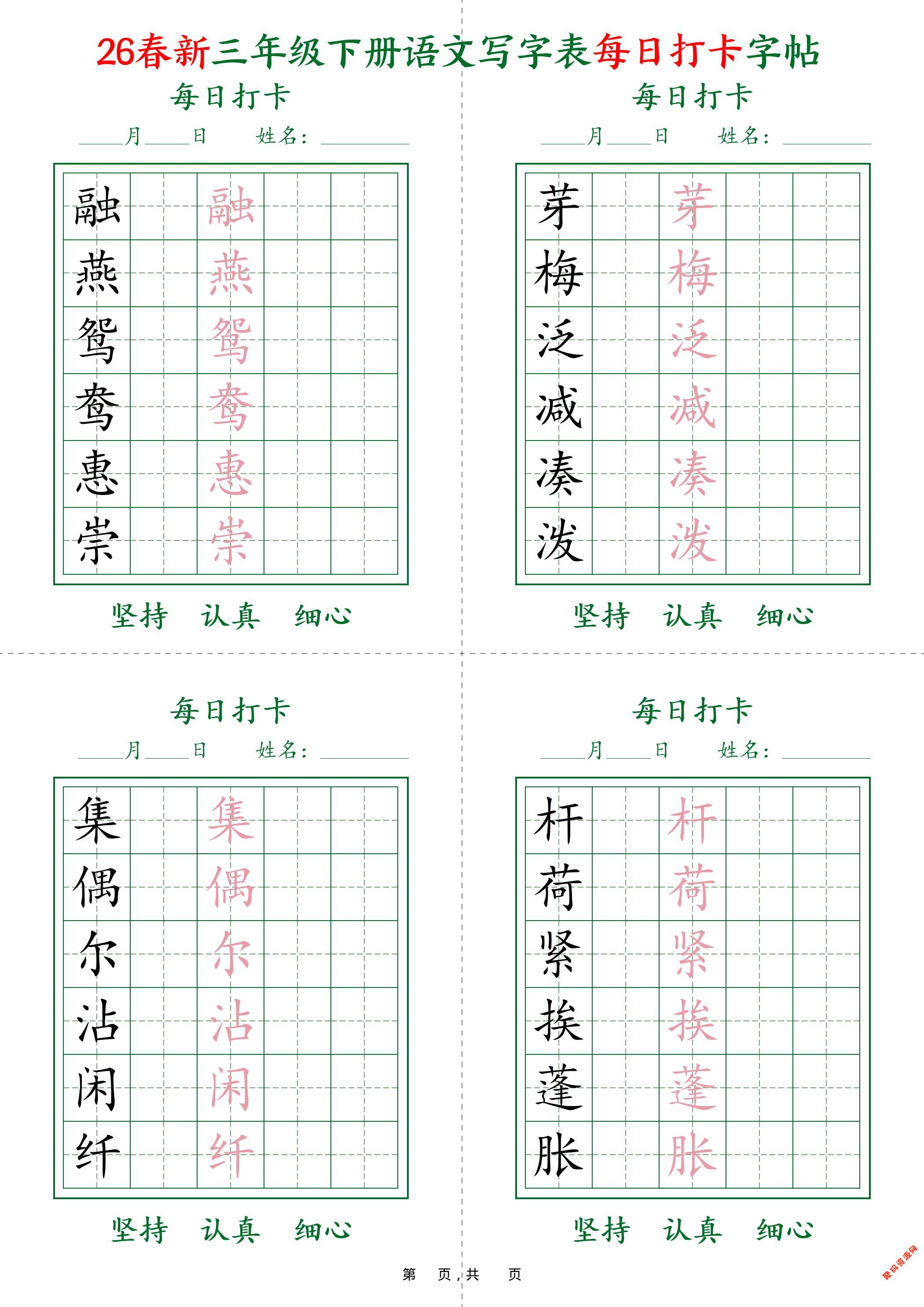 - 26春新三下语文写字表每日打卡字帖(5字版)11页 2026-02-26