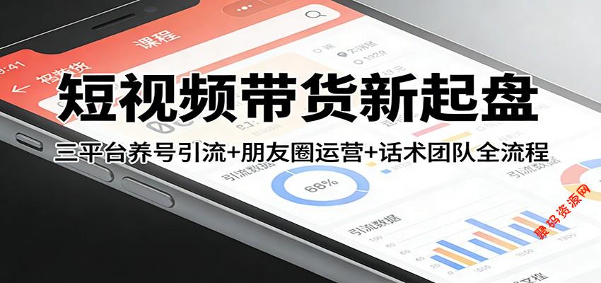 本课程《短视频带货新起盘》专注短视频 + 私域全域带货实战,从基础入门到完整起盘,手把手带你落地。内容涵盖抖音、快手、小红书三大平台养号、引流技巧;系统讲解朋友圈门面打造、内容发布、违规词规避等私域运营方法;提供基础话术、定金拉单、售后维护等全套成交流程;还包含团队部门搭建、人员要求与作业管理。课程全程干货、简单易懂,适合零基础想做短视频带货、私域变现的个人与团队,学完即可快速起盘、稳定引流、高效成交。