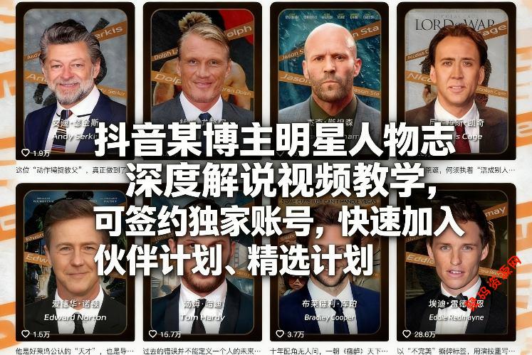 抖音某博主明星人物志深度解说视频教学,可签约独家账号,快速加入伙伴计划、精选计划