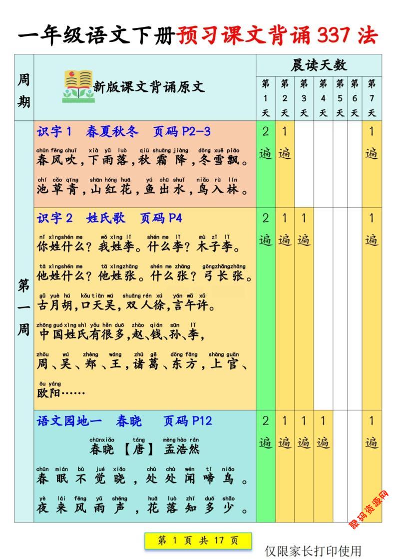聚码网 一年级 新一下语文预习课文背诵337法17页 http://www.appstore168.com/121655.html