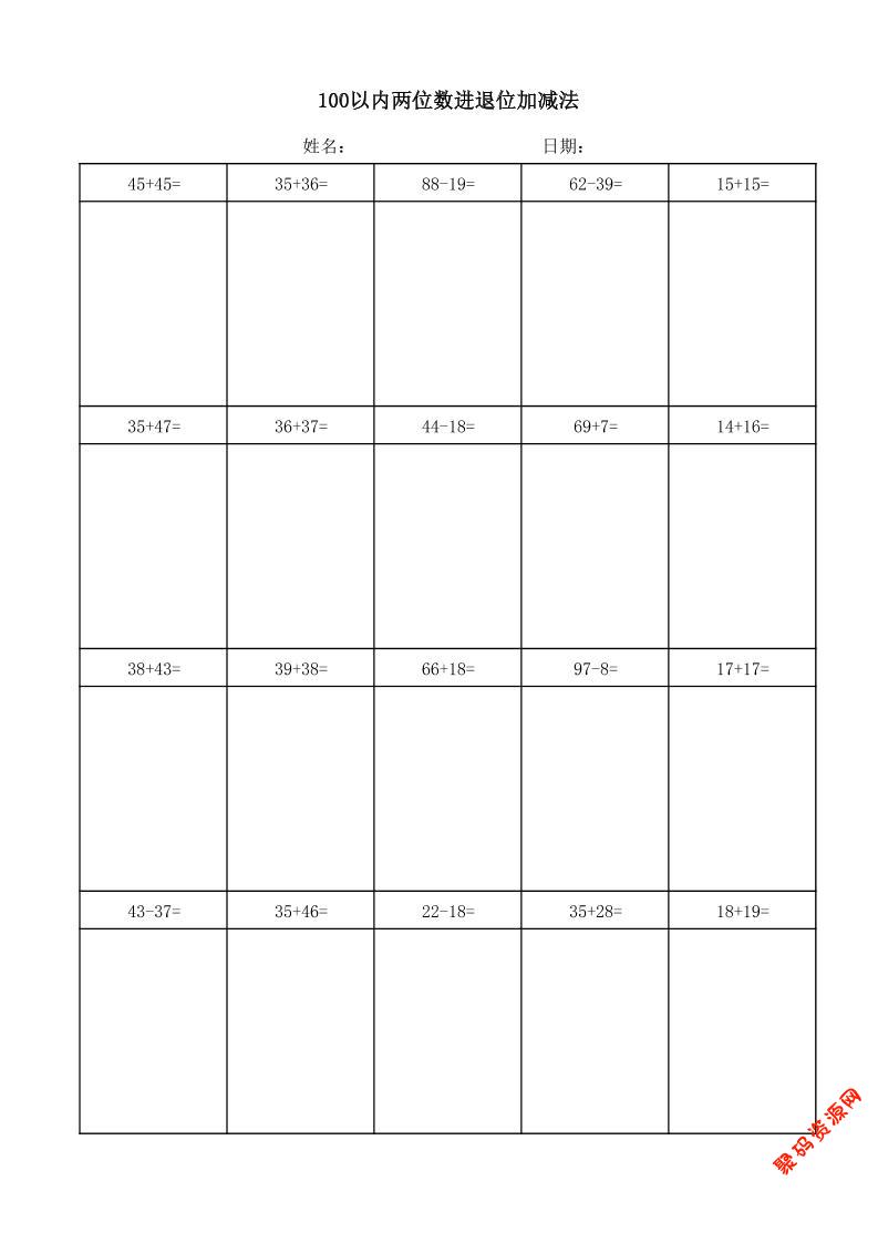 聚码网 一年级 一年级下数学100以内两位数进退位加减法(竖式) http://www.appstore168.com/121691.html