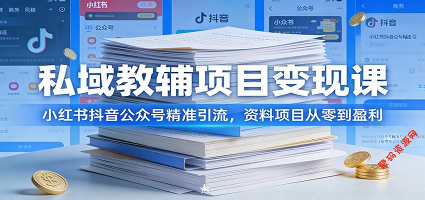 本课程是一套完整的私域教辅项目实战教程,从项目介绍、账号搭建到资料制作、内容创作、私域引流全流程教学。课程详细讲解电子底图、图文制作、桌面 / 小纸条 / 手拿资料实拍、修图、改图、二创、视频剪辑等全套内容生产技巧;同时拆解对标账号、封面标题文案、作品发布逻辑,并公开小红书、抖音、公众号丝滑引流方法。内容全是可直接落地的实操步骤,适合想做教辅资料副业、自媒体变现、私域引流的人群,零基础也能快速上手,轻松启动稳定盈利的教辅项目。