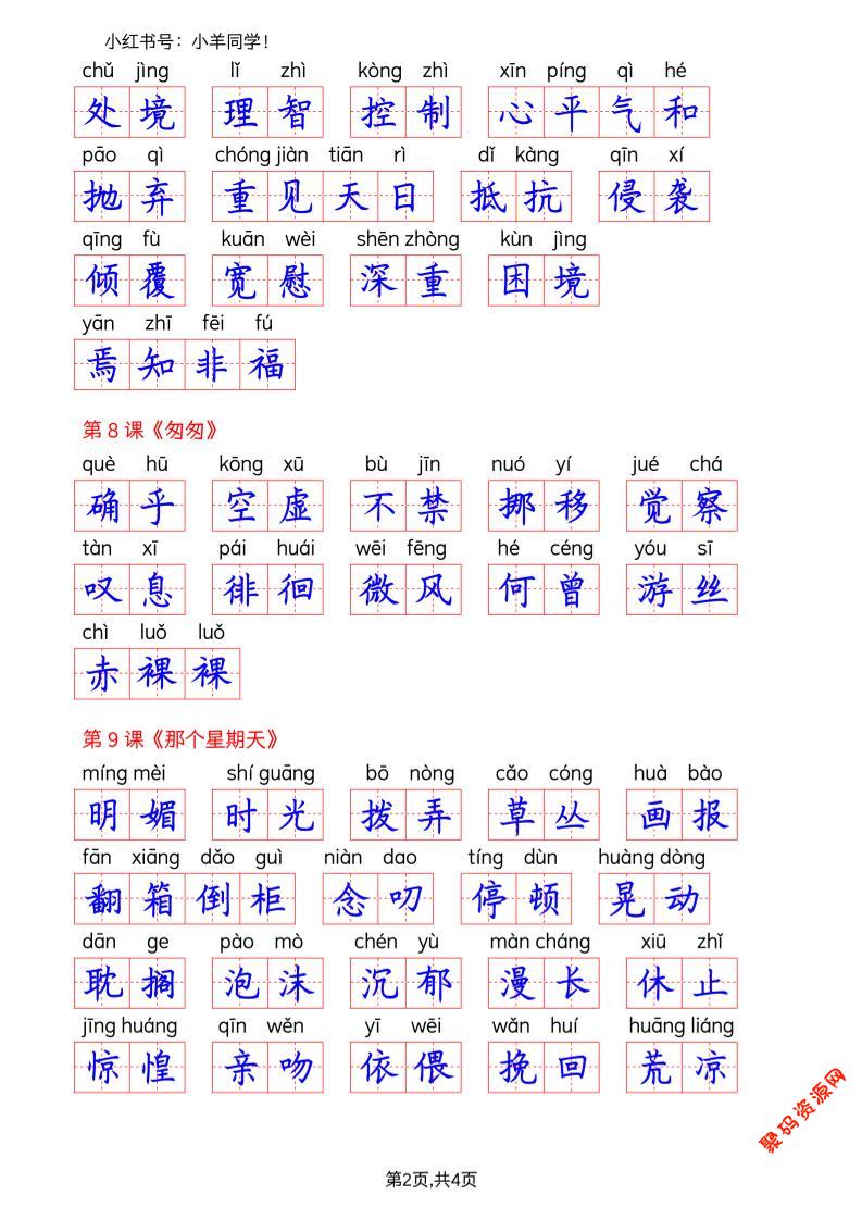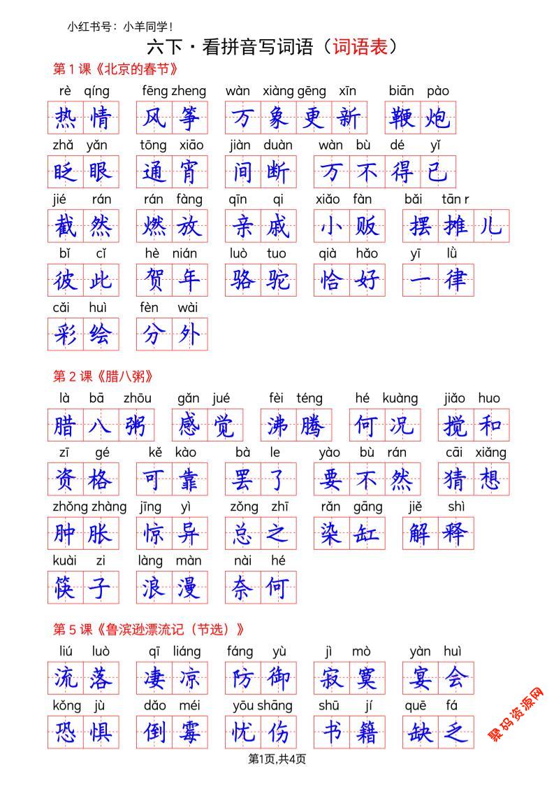- 26春六下语文生字课课贴5页 2026-02-27