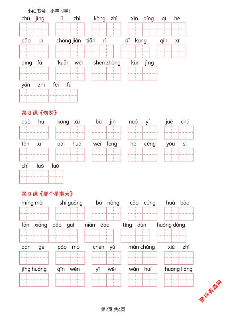- 26春六下语文生字课课贴5页 2026-02-27