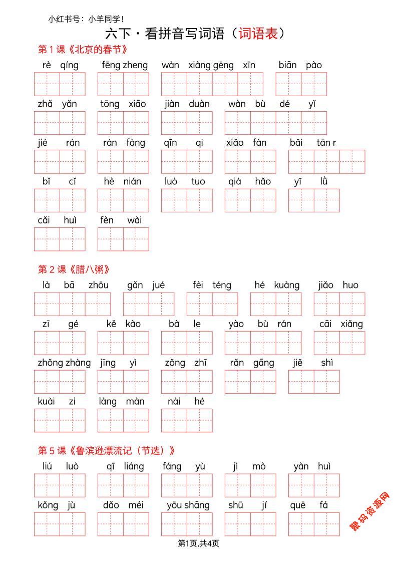- 六下语文看拼音写词语–词语表(空白) 2026-02-28