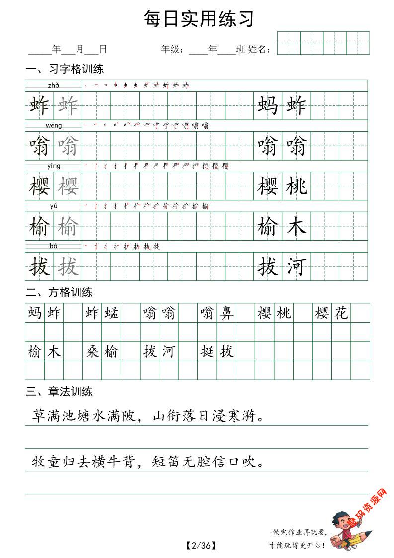 - 五下语文每日实用练习字帖(习字格+方格+章法练习) 2026-02-28