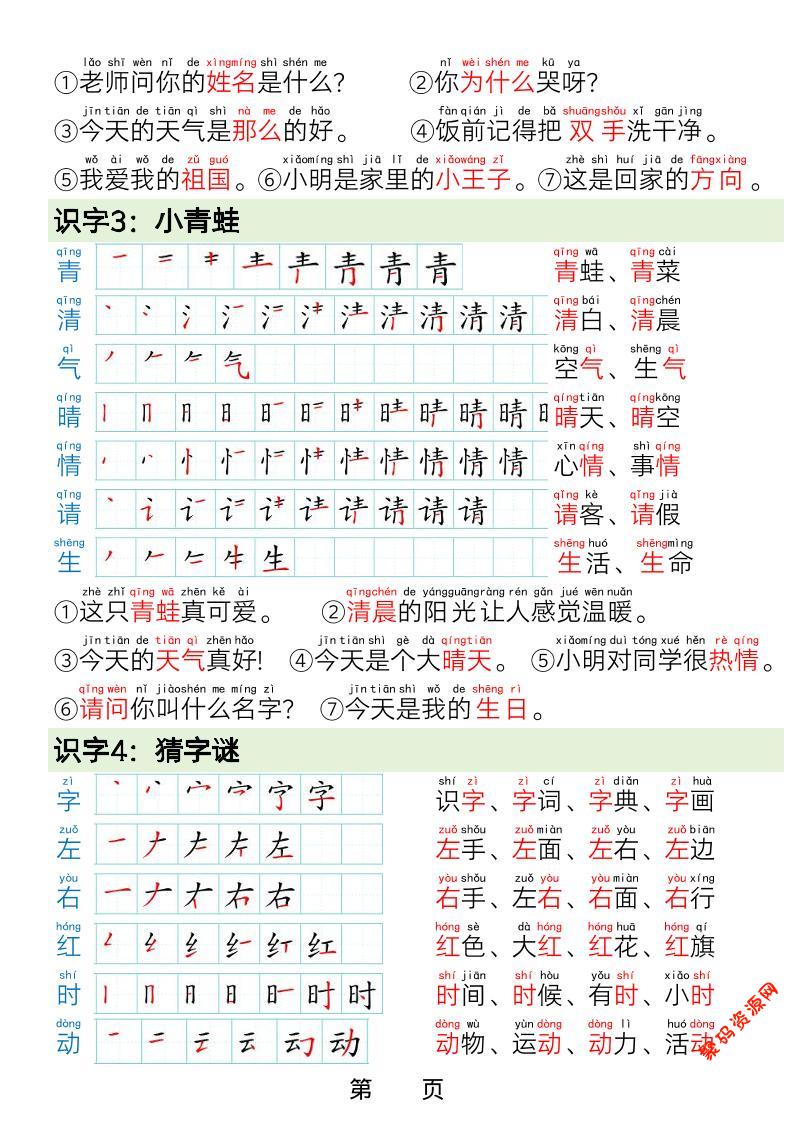 - 一下语文+《识字表》跟练字帖 2026-02-28