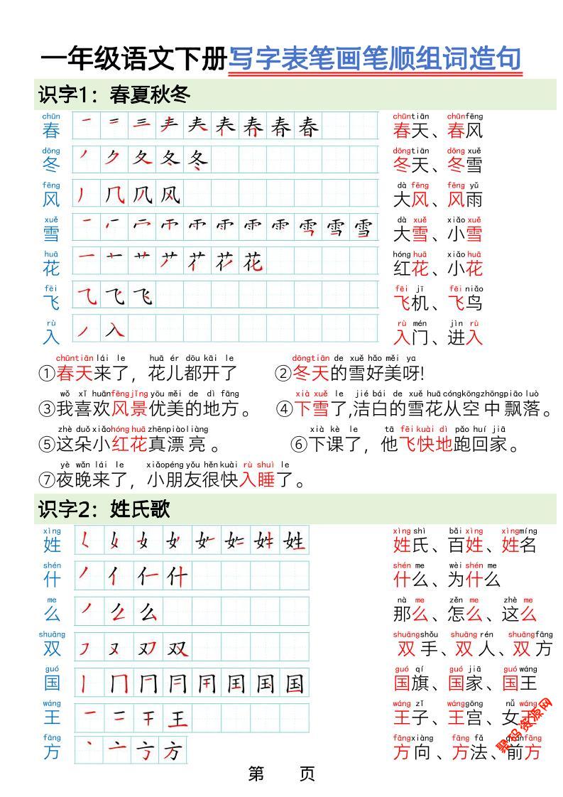 - 一年级下语文写字表笔画笔顺组词造句 2026-02-28