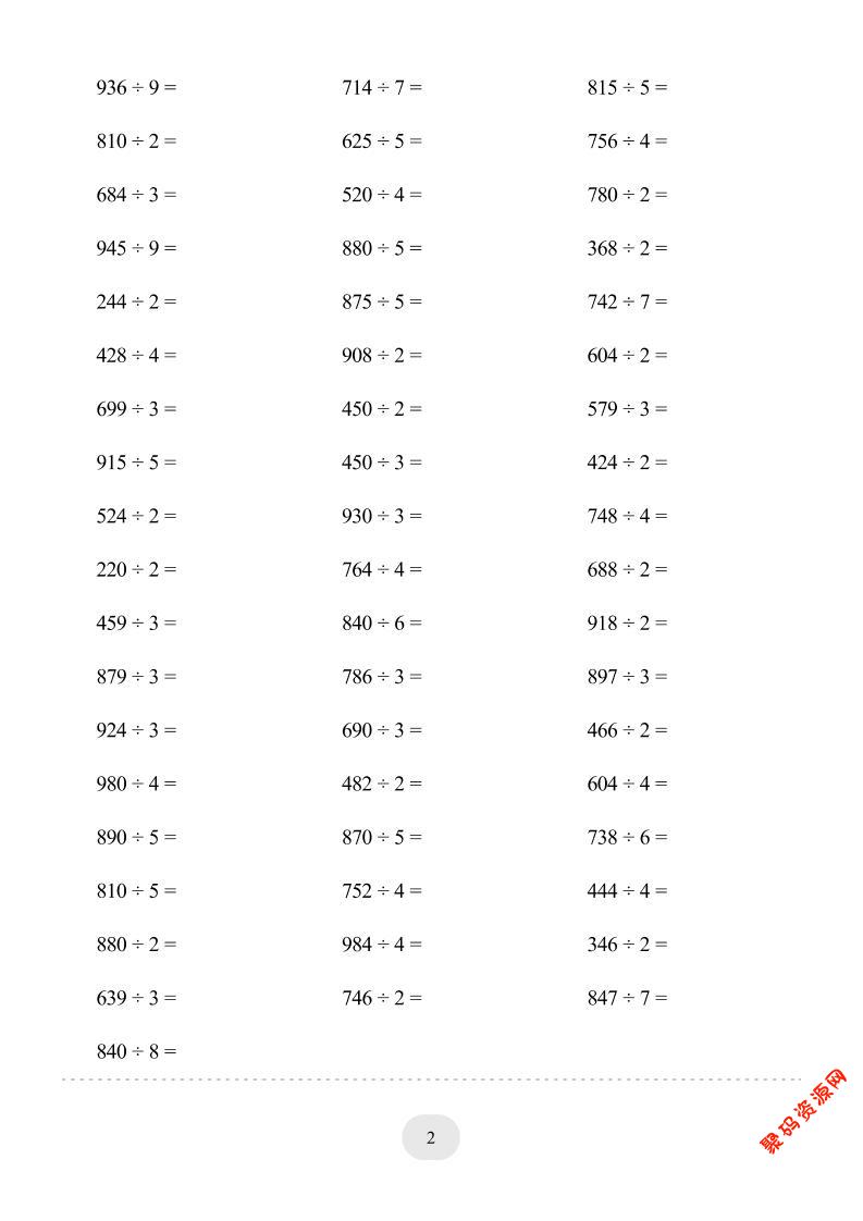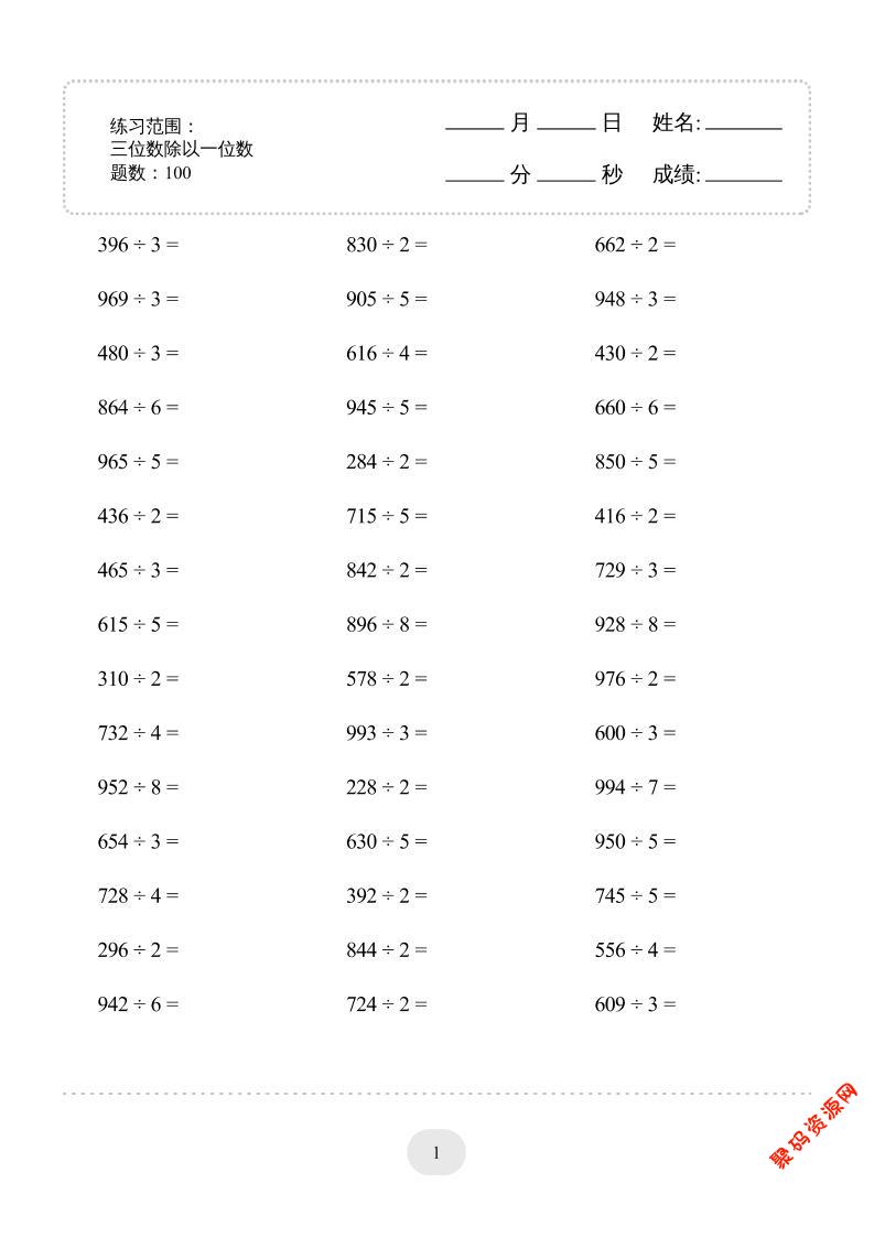 聚码网 三年级 三年级数学下册【除数是一位数的除法】10页 http://www.appstore168.com/122233.html