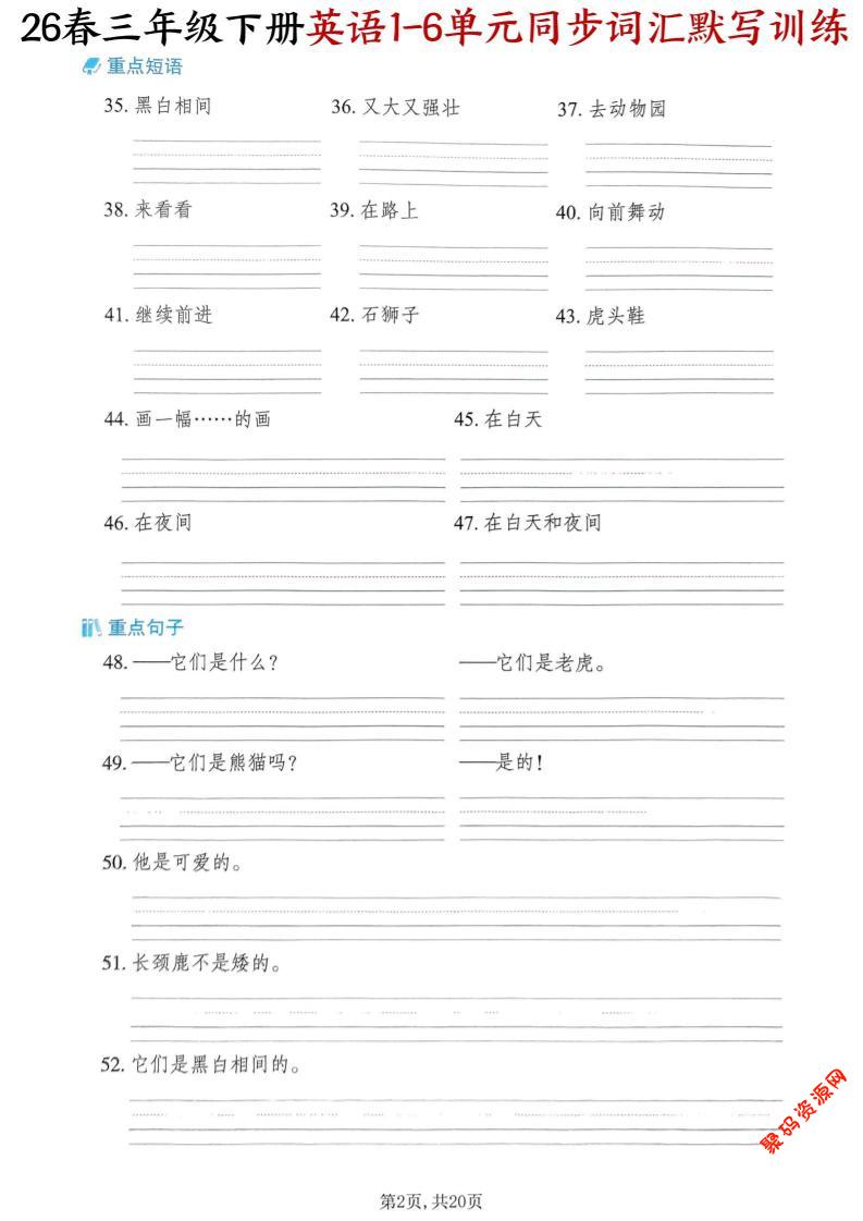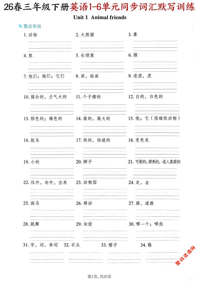 - 三下人教PEP版英语同步单词字帖 2026-03-01