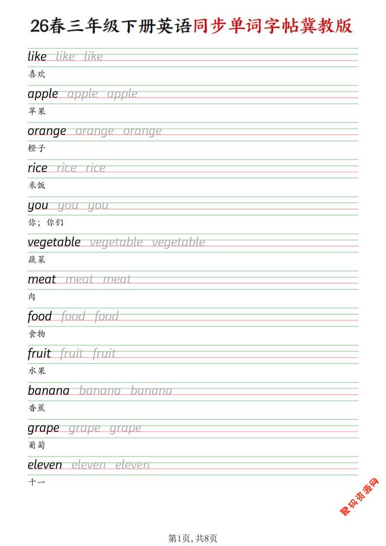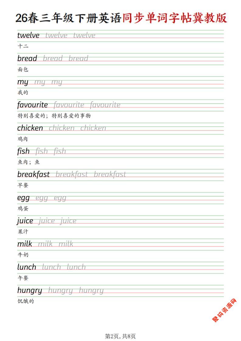 - 三下冀教版英语同步单词字帖 2026-03-01