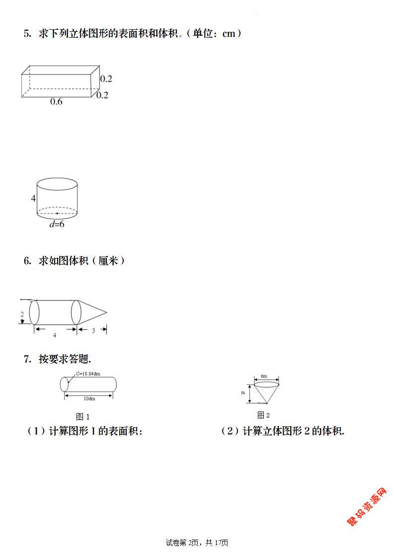 聚码网 六年级 【数学】六年级下册《圆柱与圆锥》图形计算 http://www.appstore168.com/122299.html