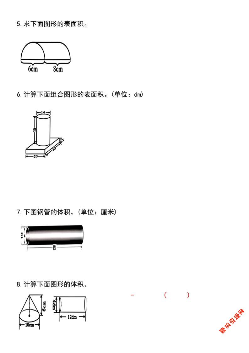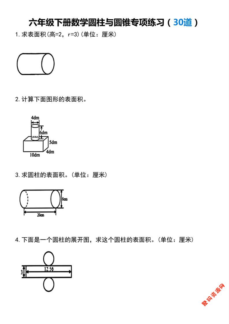 聚码网 六年级 【圆柱与圆锥专项练习(30道)】六下数学 http://www.appstore168.com/122311.html