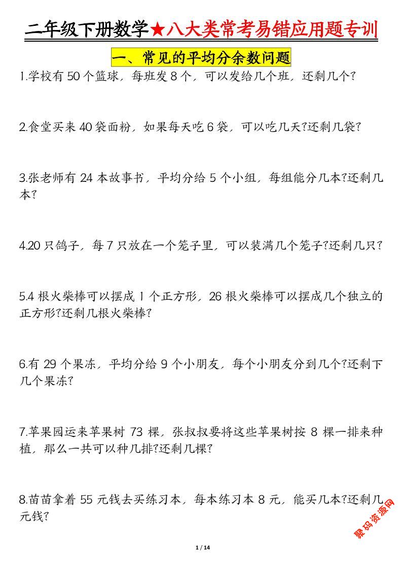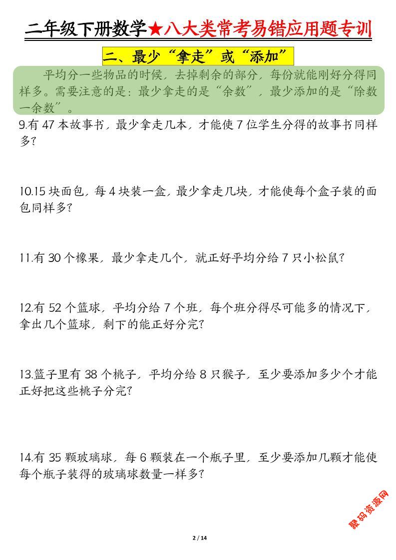 聚码网 二年级 二年级下数学期末常考8种易错应用题 http://www.appstore168.com/122477.html