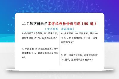 - 二年级下数学常考经典易错应用题50道 2026-03-02