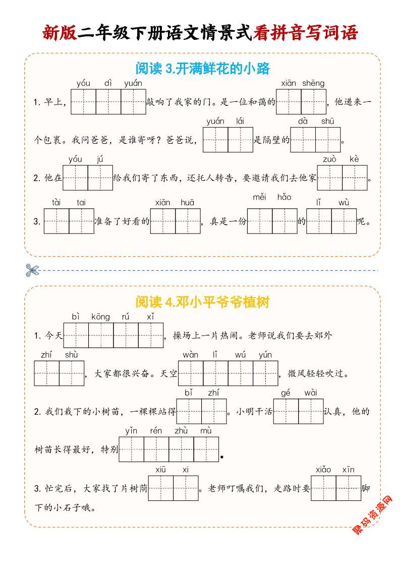 - 二年级下语文情景式看拼音写词语 2026-03-03