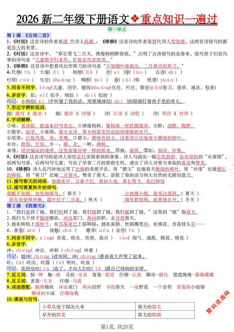 聚码网 二年级 二年级下语文2026春重点知识一遍过 http://www.appstore168.com/122934.html