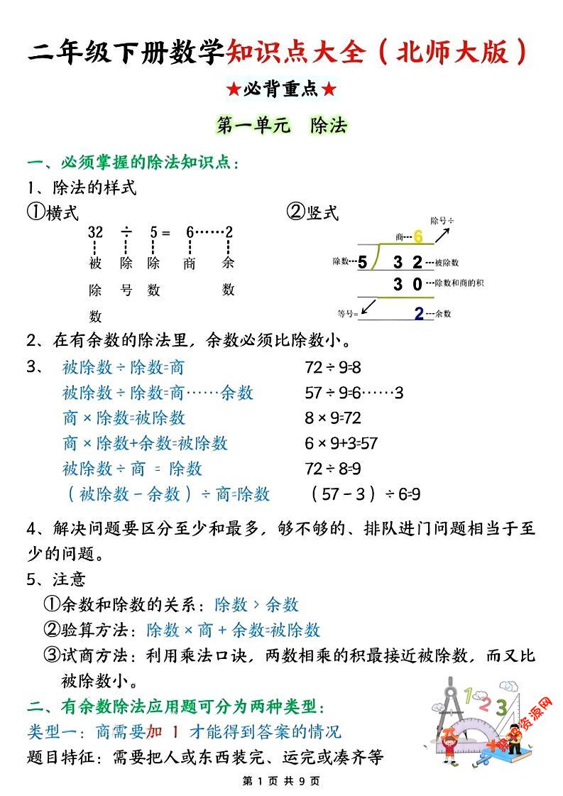 聚码网 二年级 二年级下数学知识点大全《北师版》 http://www.appstore168.com/122958.html