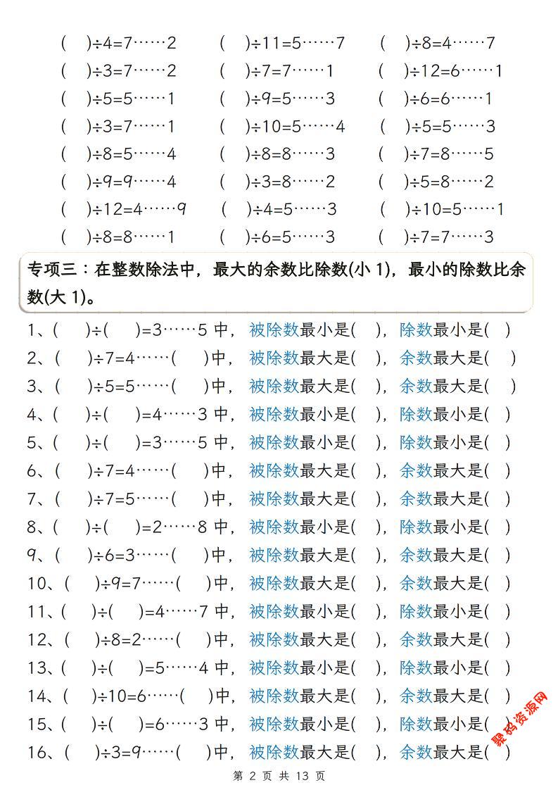 - 二年级下数学有余数的除法五大专项练习 2026-03-03