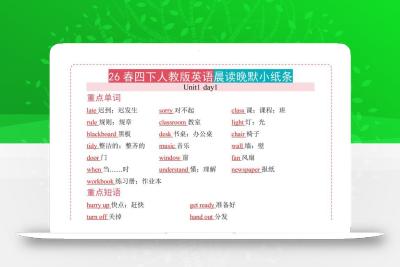 - 四年级下英语晨读晚默小纸条《人教版PEP》 2026-03-04