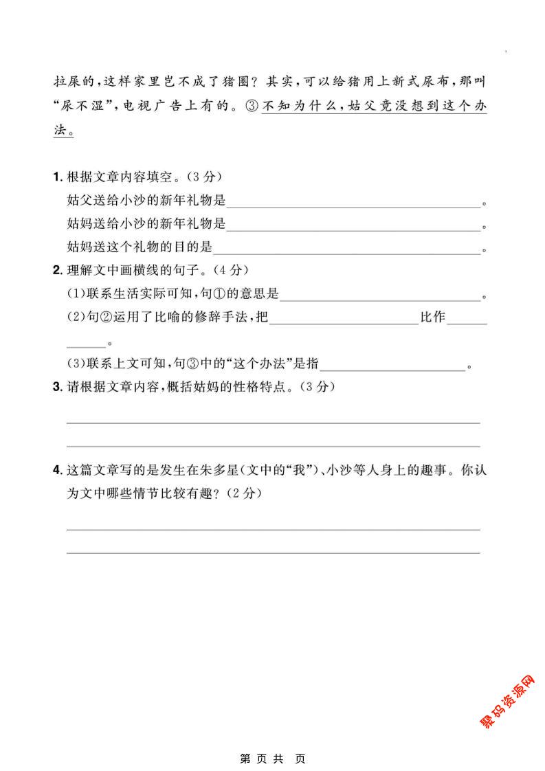 - 三年级下语文阅读专项训练 2026-03-04