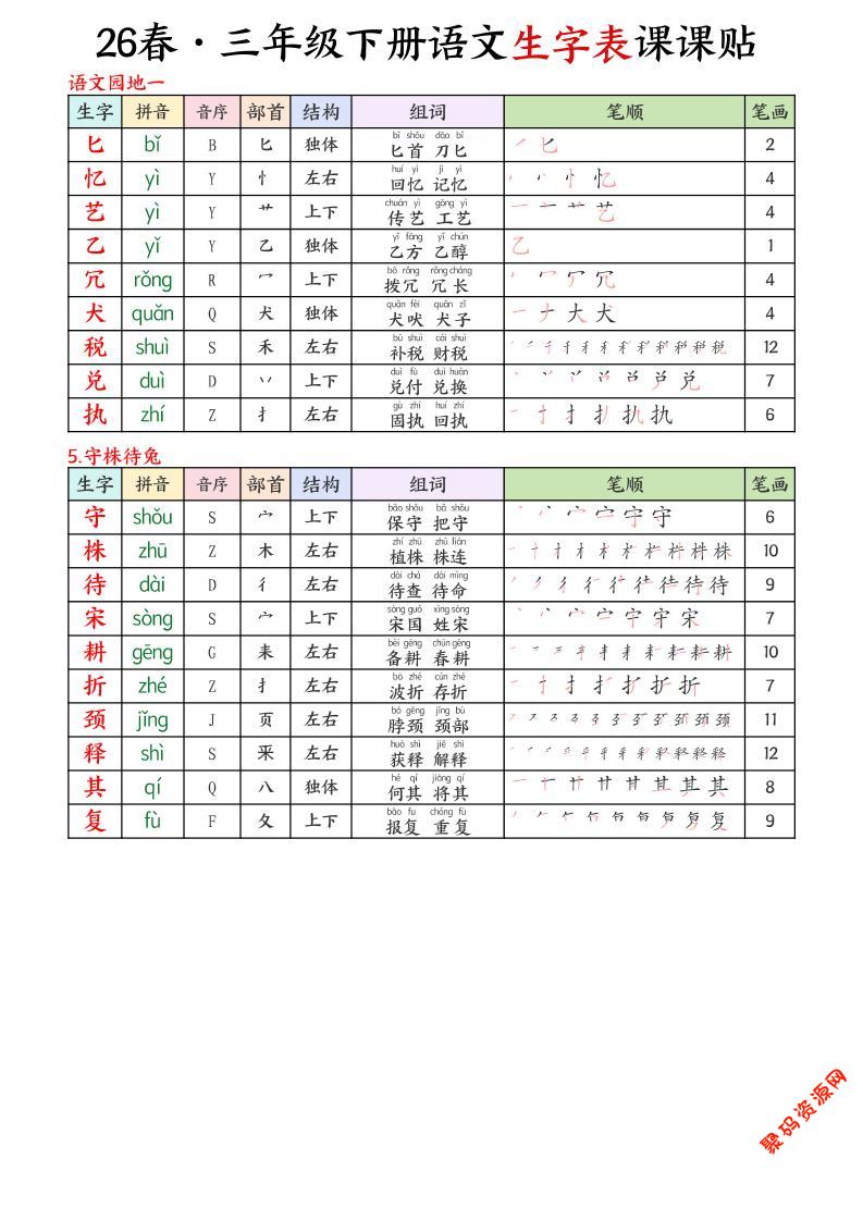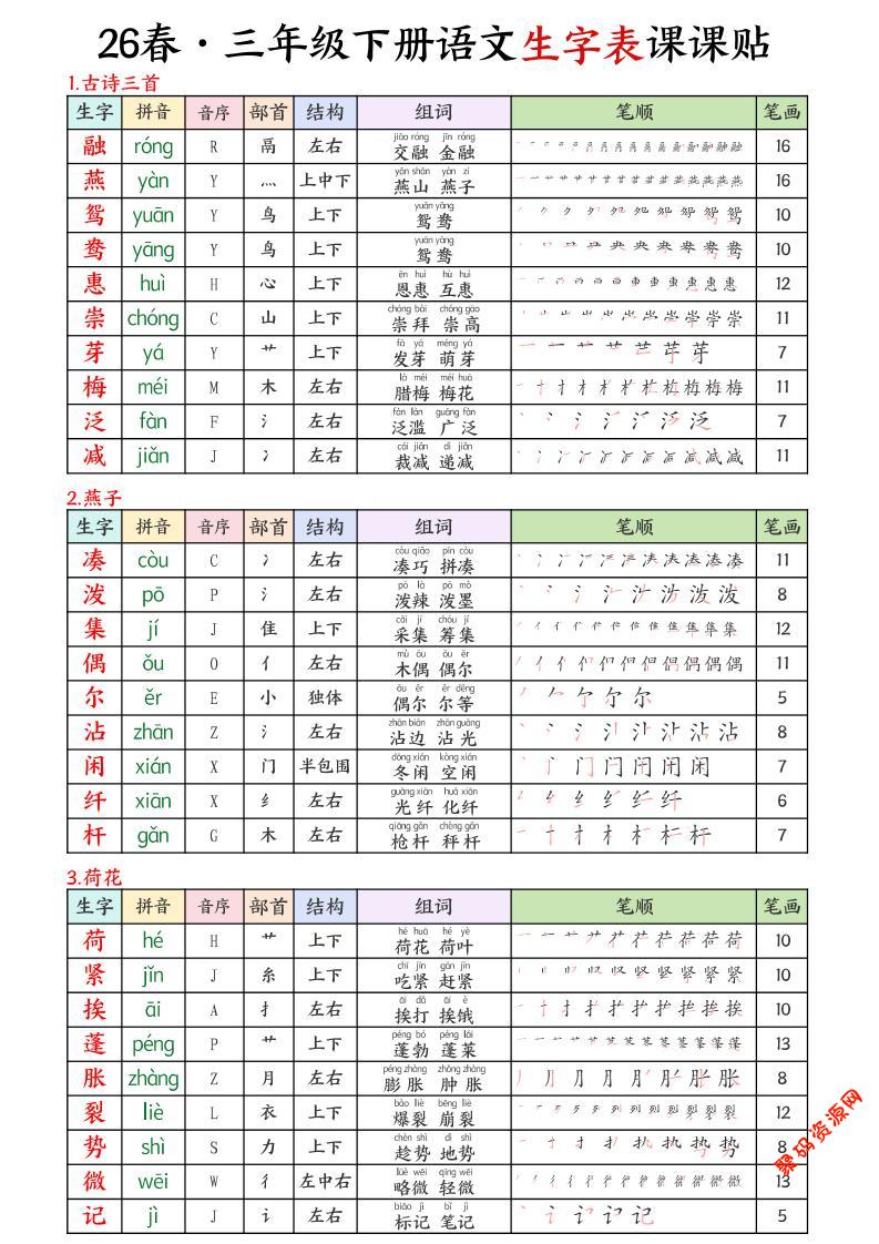 聚码网 三年级 三年级下语文26春新生字表课课贴 http://www.appstore168.com/123169.html