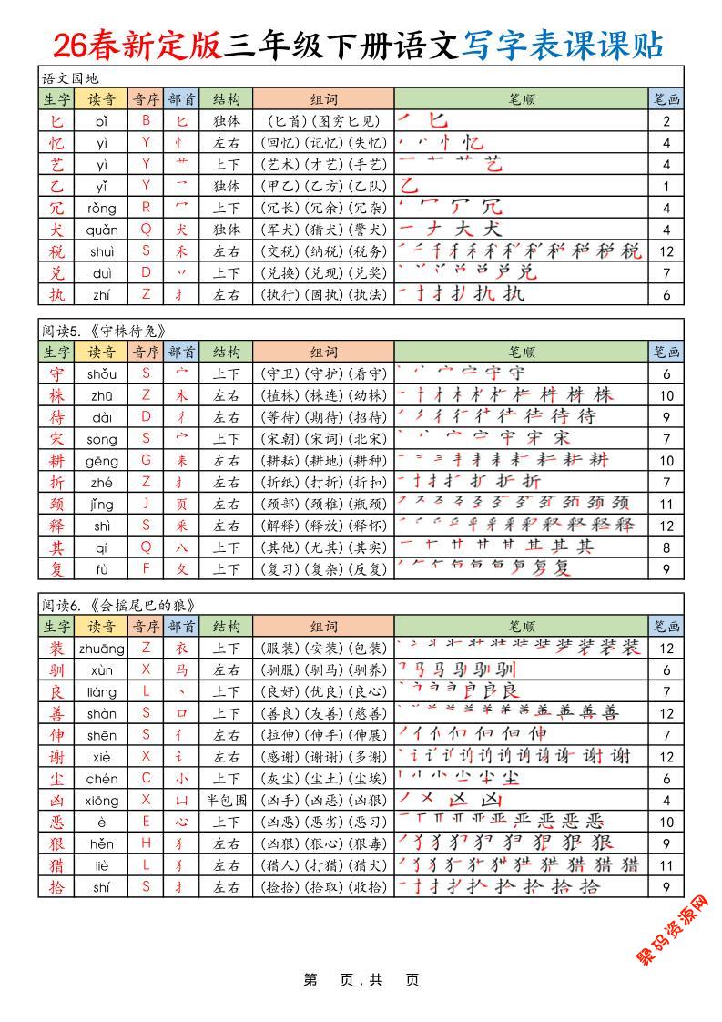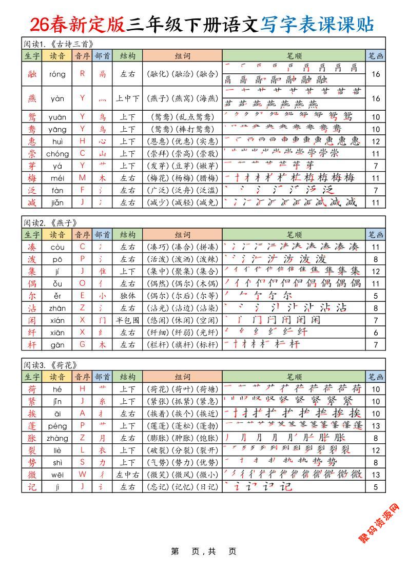 聚码网 三年级 三年级下语文26春【写字表课课贴】 http://www.appstore168.com/123175.html