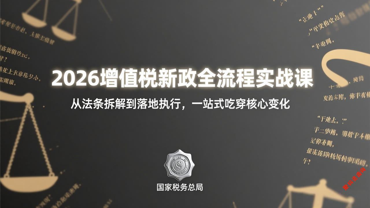 本课程专为企业经营者、财税从业者打造,是一套从法条到落地的2026年增值税新政全流程实战课。课程以法条深度解读为根基,从立法沿革、纳税义务人变化、境内交易判定、视同销售规则颠覆、税率调整到混合销售变革,逐条拆解新政核心要点。同时结合税总2026年2号公告、财税2026年9号公告等配套文件,详解一般纳税人新规、9%税率货物变化、销售服务注释调整等落地细则。通过新旧政策对比、账务处理、纳税申报、风险防控、合规筹划的闭环教学,帮助学员一站式吃透新政,实现从“懂政策”到“会落地、能合规、善优化”的全面提升。