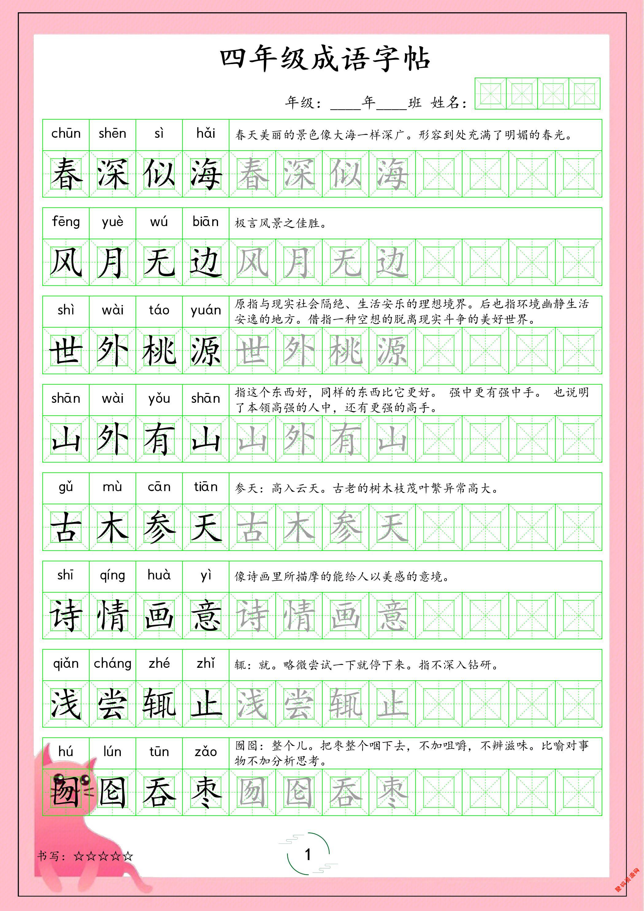 - 四年级下语文成语字帖 2026-03-05