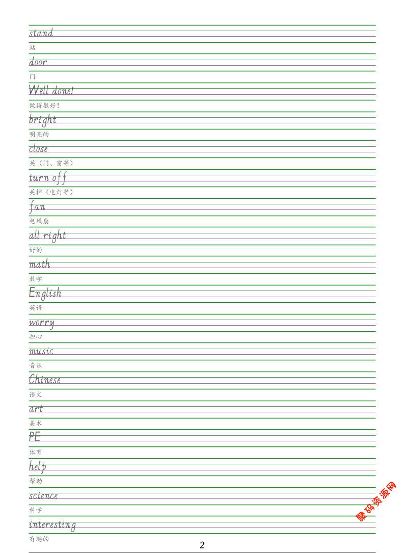 - 四年级下英语手写体字帖《人教精通版》 2026-03-05