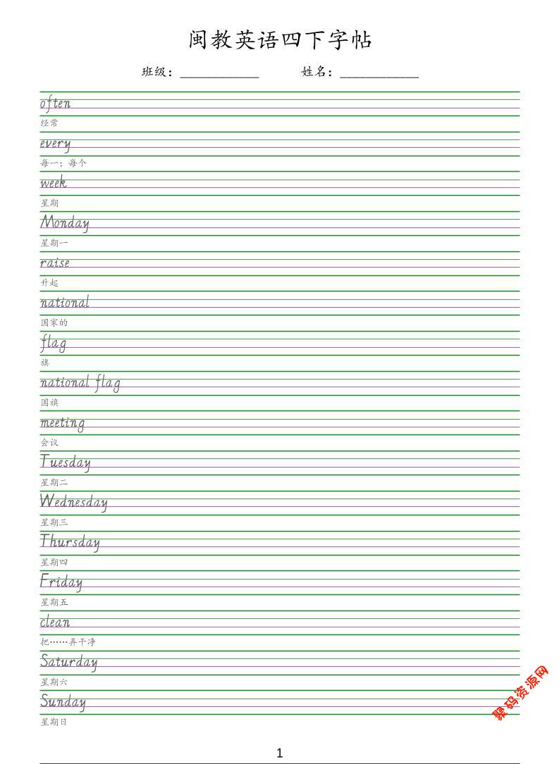 聚码网 四年级 四年级下英语手写体字帖《闽教版》 http://www.appstore168.com/123397.html