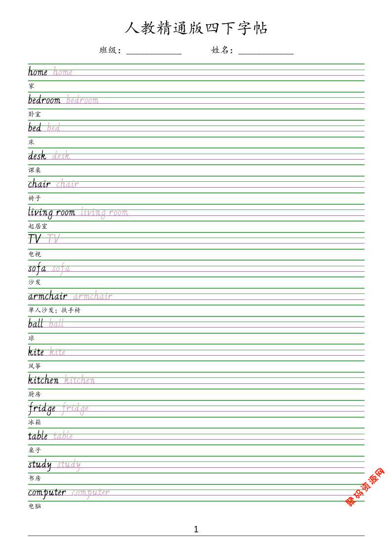 聚码网 四年级 四年级下英语手写体字帖《人教精通版》 http://www.appstore168.com/123404.html