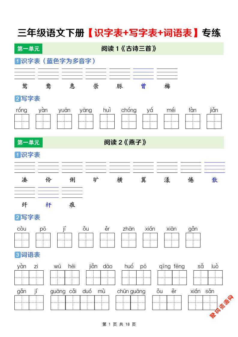 聚码网 三年级 三年级下语文【识字表+写字表+词语表】专项练 http://www.appstore168.com/123428.html