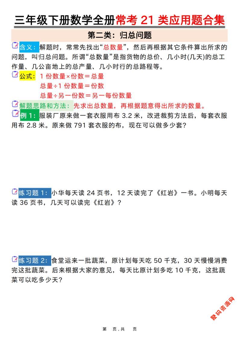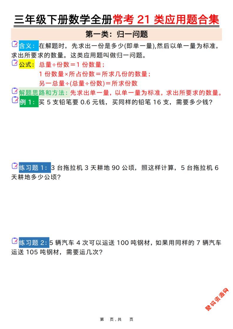 聚码网 三年级 三年级下数学全册常考21类应用题合集 http://www.appstore168.com/123482.html