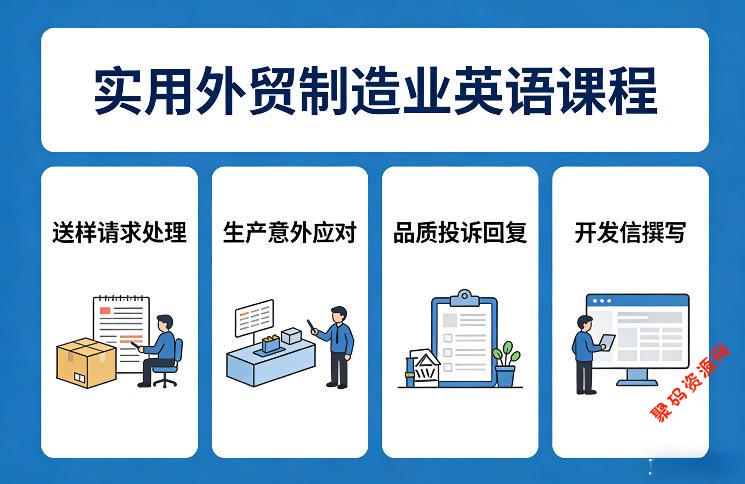 实用外贸制造业英语课程,教你专业处理送样请求、应对生产意外、回复品质投诉、撰写开发信等