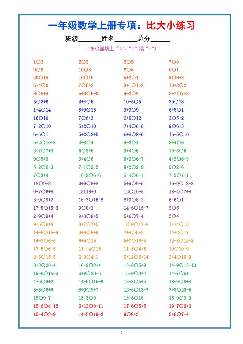 聚码网 一年级 一上数学比大小专项练习题(共3组) http://www.appstore168.com/14878.html
